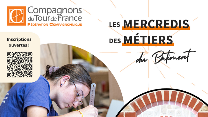 Informations et inscriptions sur notre site web : https://toulouse.compagnonsdutourdefrance.org/evenement/mercredi-des-metiers-du-batiment/
