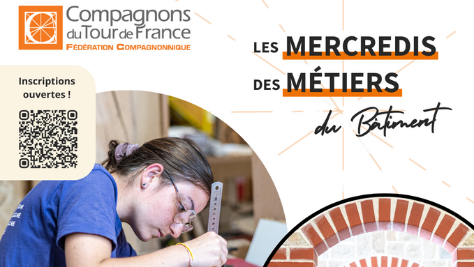 Informations et inscriptions sur notre site web : https://toulouse.compagnonsdutourdefrance.org/evenement/mercredi-des-metiers-du-batiment/