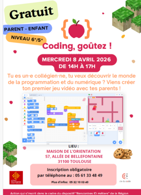 - Mercredi 8 avril 2026 : « Coding, goûtez ! » parents-enfants