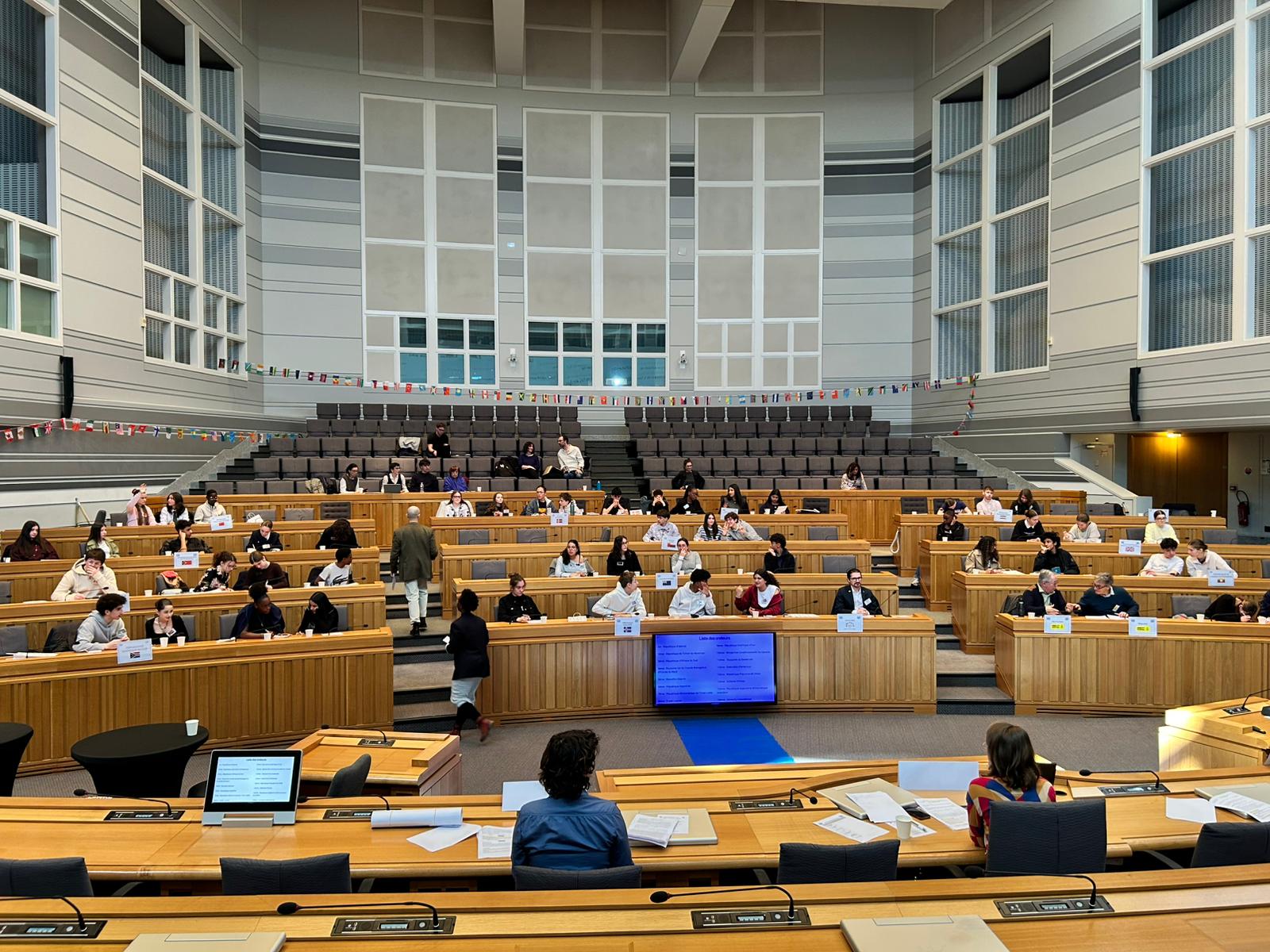 Dans le cadre du parcours Laïque et Citoyen 2025/2026, comme chaque année, l'Ecole des Droits Humains et de la Terre a organisé la restitution de son action "SIMUL'ONU" : 3 classes de de collèges ont participé à cette action.