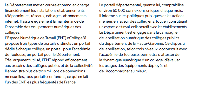 Afin de fournir aux collégiens les meilleures conditions de travail possibles, le Conseil départemental dote les collèges de la Haute-Garonne d’équipements numériques performants et adaptés aux besoins pédagogiques
