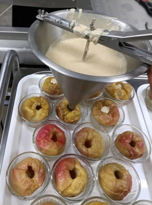 Exemple : plutôt qu’une simple pomme au four, le chef la revisite avec un insert crémeux pomme-cannelle. Une belle preuve de créativité pour éveiller les papilles des collégiens. |