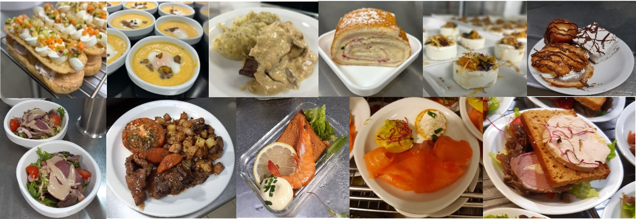 Collège de Toulouse Ponts Jumeaux : velouté de butternut châtaignes et son œuf parfait, éclair bi-goût thon et tarama maison, filet de canette sauce shitaké, filet de colin en croute de cèpes, purée à la truffe, chèvre frais façon mendiant et bûche de Noël maison.